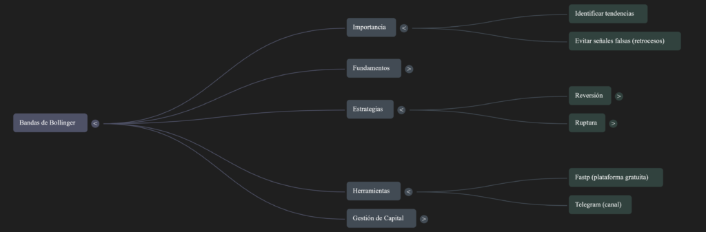 • La línea media indica la dirección del precio, mientras que las bandas superior e inferior reflejan la volatilidad.