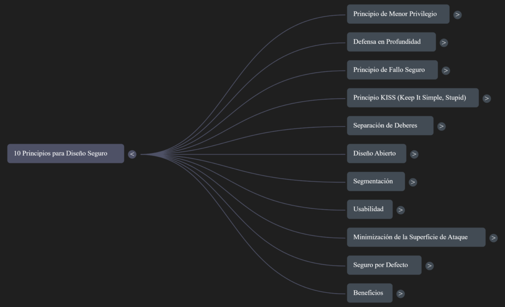 A continuación, se detallan los diez principios de diseño seguro presentados en la fuente, incluyendo citas relevantes cuando apropiado:
