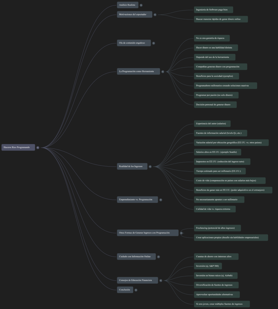 - Se sugiere que, más allá del empleo tradicional, existen otras formas de generar ingresos con la programación, como el freelancing. Se menciona un video del canal que detalla cómo ganar hasta 100,000 dólares al año como freelancer.