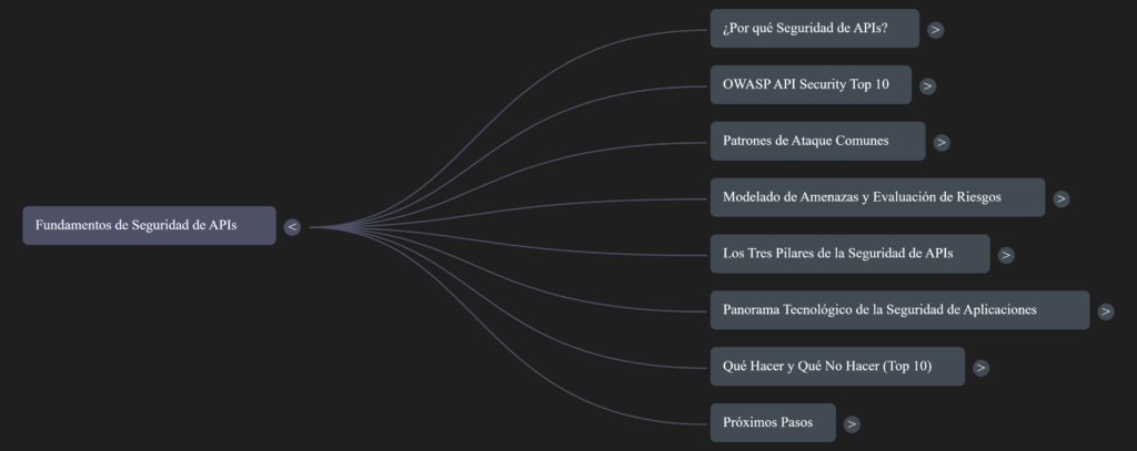 La seguridad de las APIs es un aspecto crítico de la ciberseguridad moderna. Este curso proporciona una base sólida para comprender los riesgos, las amenazas y las mejores prácticas para proteger las APIs. La adopción de los tres pilares de la seguridad de APIs (gobernanza, monitoreo y pruebas), junto con la comprensión del OWASP API Security Top 10 y los patrones de ataque comunes, es fundamental para construir y mantener APIs seguras en el panorama de amenazas actual.